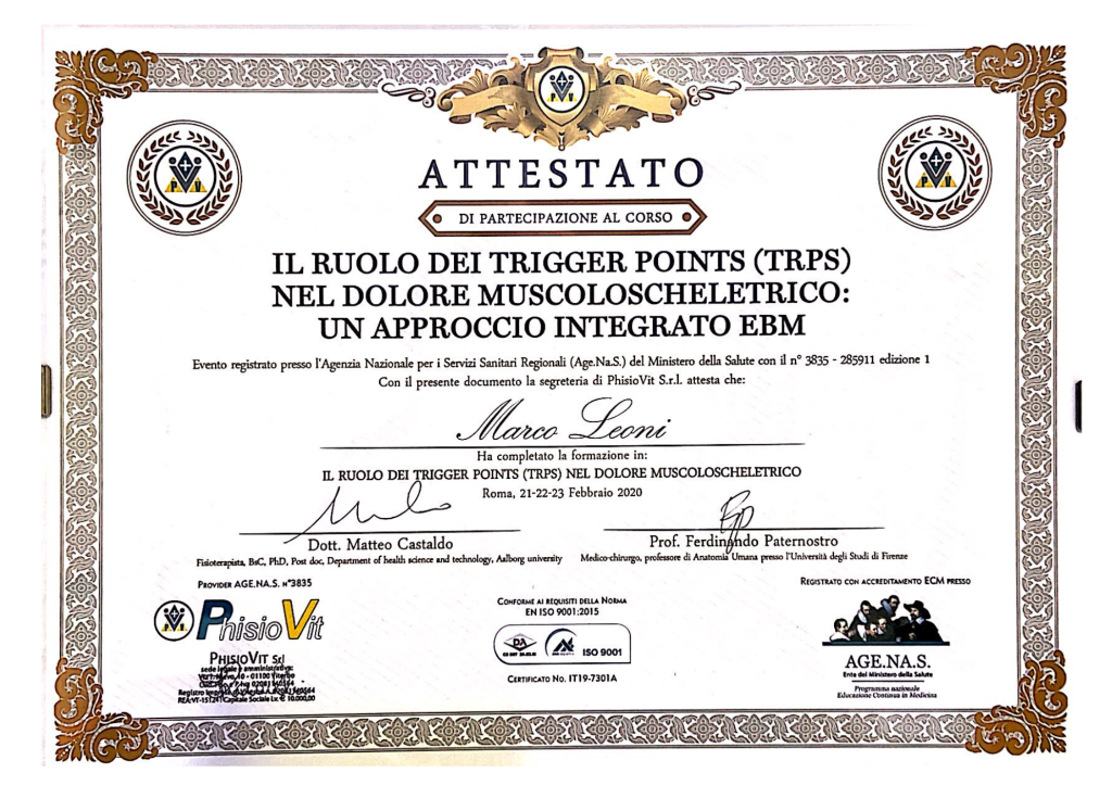 Mi chiamo Marco Leoni e sono un Dottore in fisioterapia, laureato presso L’Università di Tor Vergata (RM) specializzato nel trattamento delle patologie muscolo-scheletriche. Da oltre sei anni lavoro in ambulatori privati e convenzionati, dove ho maturato esperienza nella valutazione, riabilitazione e gestione del dolore acuto e cronico.